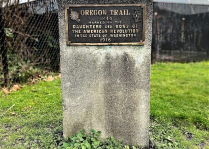 Welcome to the Oregon Trail Route Historical Marker in Tumwater, Washington. This marker commemorates the